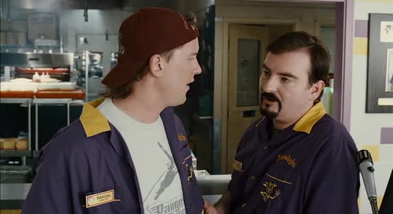 A calamity at Dante and Randal's shops sends them looking for new horizons - but they ultimately settle at the fast food empire Mooby's.